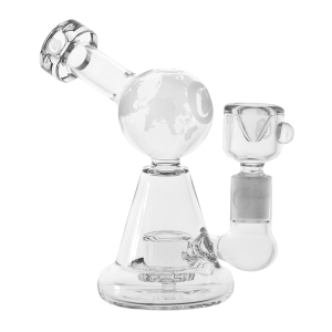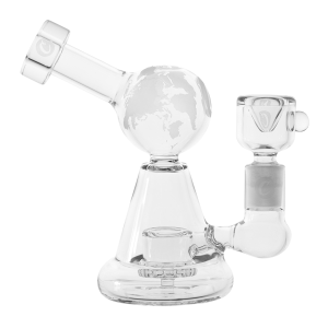 Stylish Rig featuring a globe with the Earth’s geography etched onto the glass.